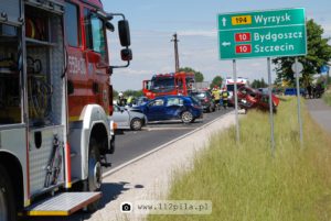Zgłoszenie o wypadku drogowym Stanowisko Kierowania Komendanta Powiatowego Państwowej Straży Pożarnej w Pile odebrało około godziny 11:30. Ze względu na treść zgłoszenia – zderzenie 4 pojazdów oraz kilka osób poszkodowanych na miejsce zadysponowane zostały dwie okoliczne jednostki ochrony przeciwpożarowej – OSP Wyrzysk oraz OSP Osiek nad Notecią oraz dodatkowo zastępy z dwóch pilskich jednostek Państwowej Straży Pożarnej w tym ciężki samochód ratownictwa technicznego z JRG 1 Piła(podczas dojazdu zastępy z JRG 1 Piła zostały zawrócone).