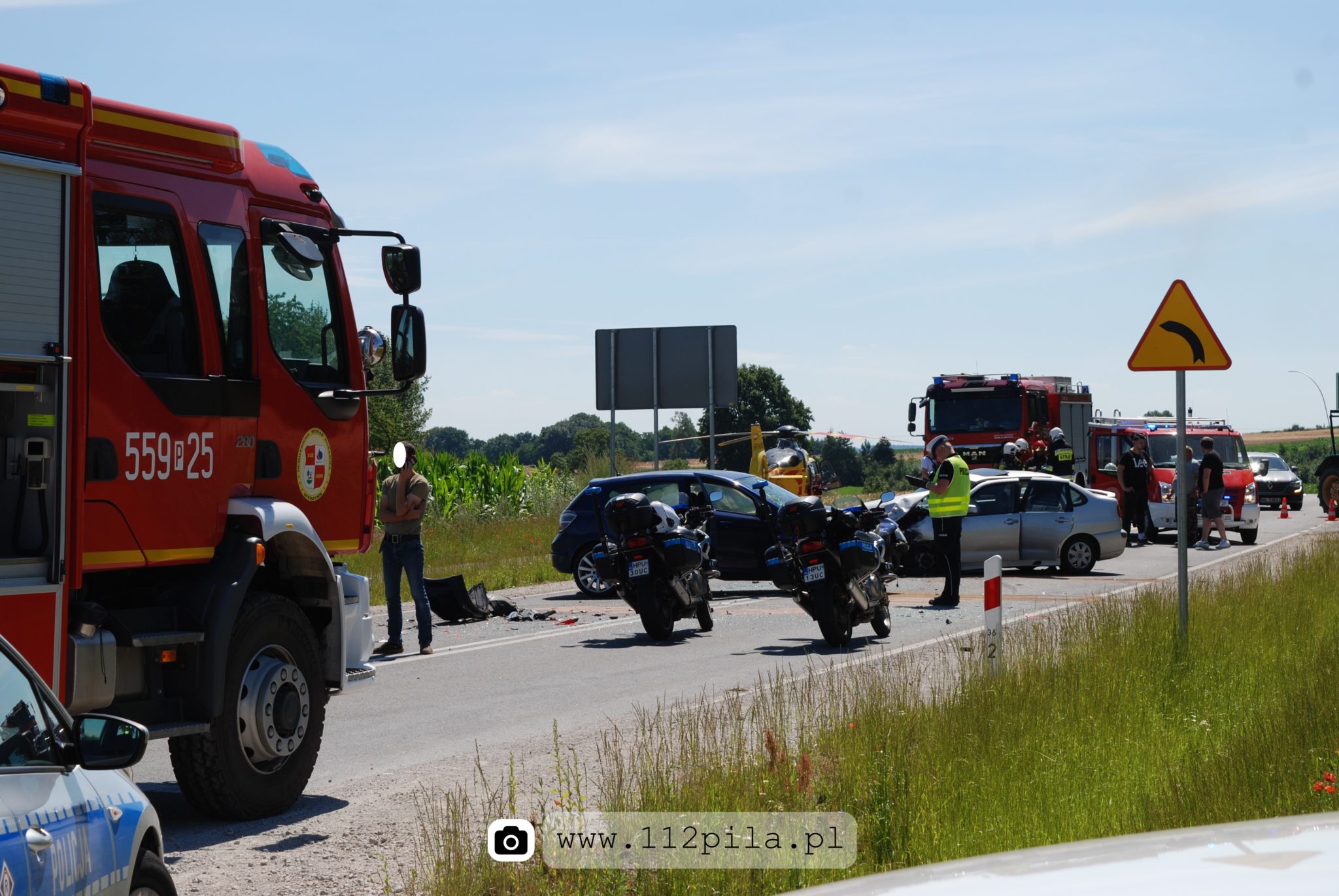 Do bardzo groźnego wypadku drogowego doszło dzisiejszego popołudnia na Drodze Wojewódzkiej nr. 194 na odcinku Wyrzysk – Osiek nad Notecią przy skrzyżowaniu z drogą na Polanowo. Na miejscu interweniował śmigłowiec Lotniczego Pogotowia Ratunkowego.