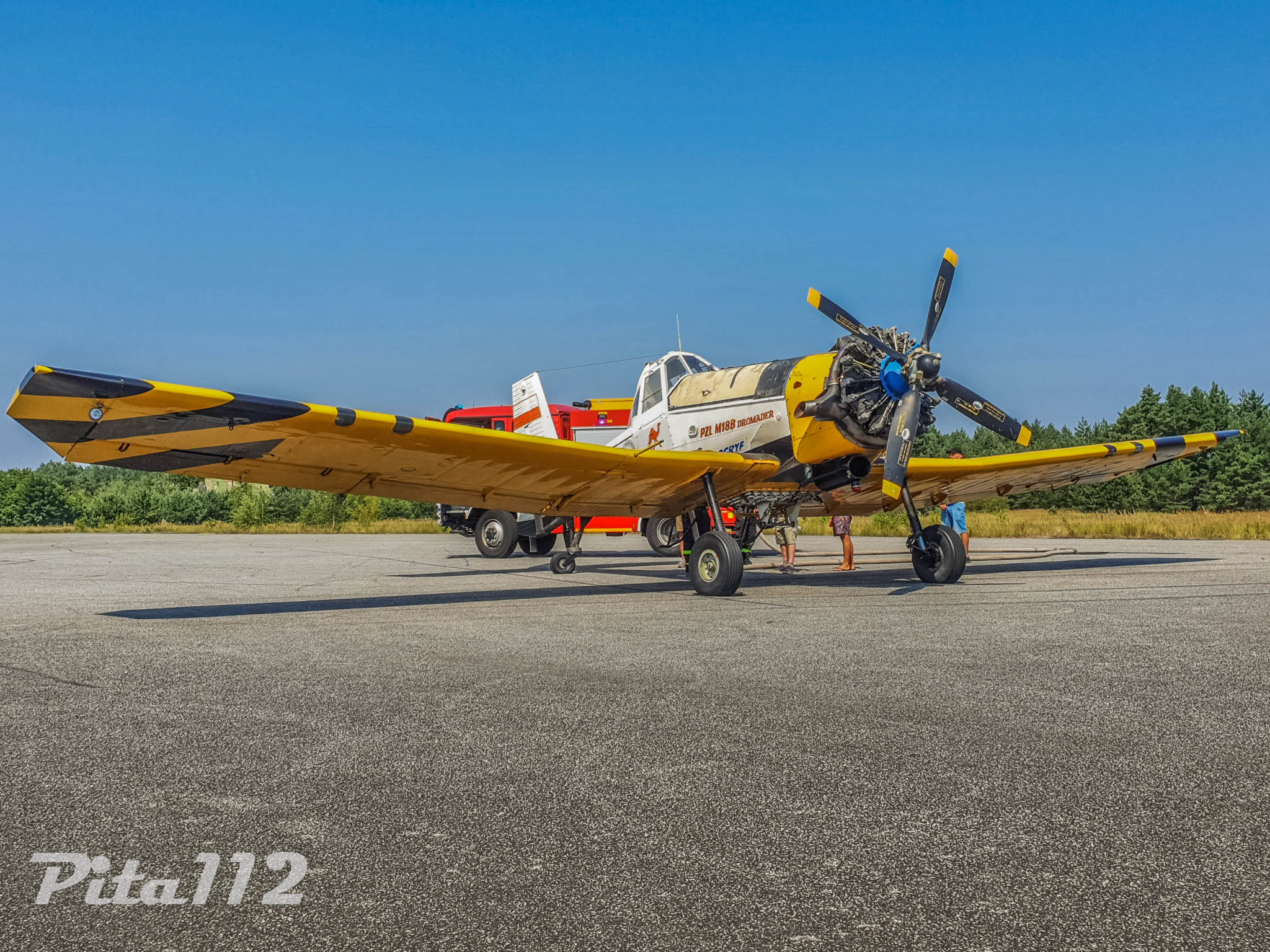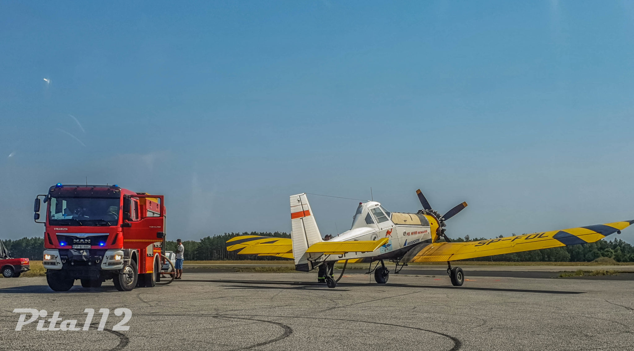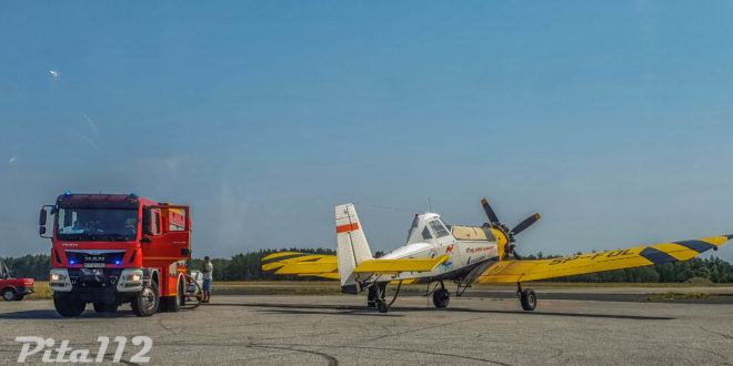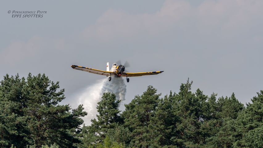Prócz strażaków do działań gaśniczych skierowano samolot gaśniczy DROMADER stacjonujący w bazie w Krępsku.