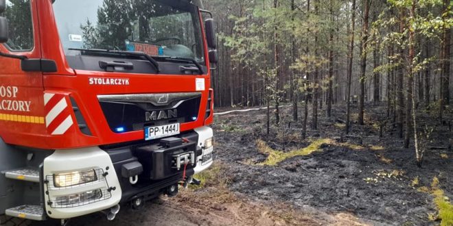 Do SKKP PSP w Pile zgłoszenie dotyczące pożaru lasu w okolicach jeziora Jeleniowego wpłynęło po godzinie 9 rano w dniu dzisiejszym(17.08.2020). Na miejsce zadysponowane zostały znaczne siły i środki strażaków z PSP oraz jednostek OSP.