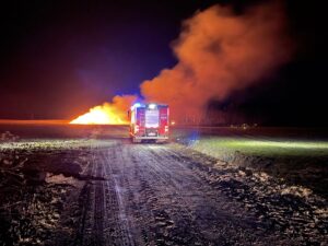 Wczorajszej nocy (14.03.2021) około godziny 02:30 do Stanowiska Kierowania Komendanta Powiatowego Państwowej Straży Pożarnej w Pile wpłynęło zgłoszenie o widocznej lunie ognia w okolicach miejscowości Sędziniec (gm. Wysoka).