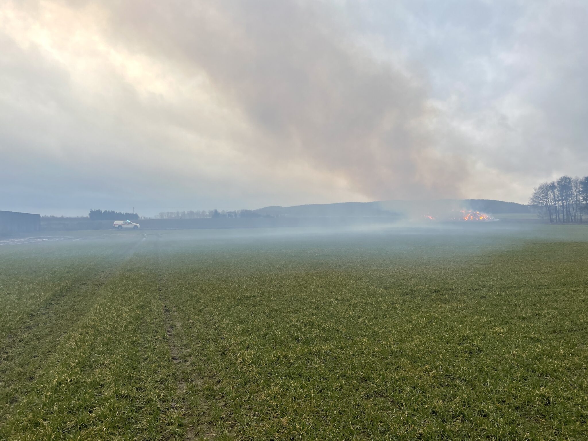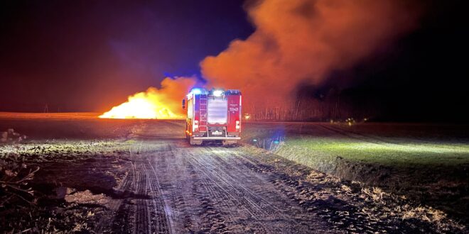 W wyniku zdarzenia obiekt wraz ze słomą spłonął w całości.