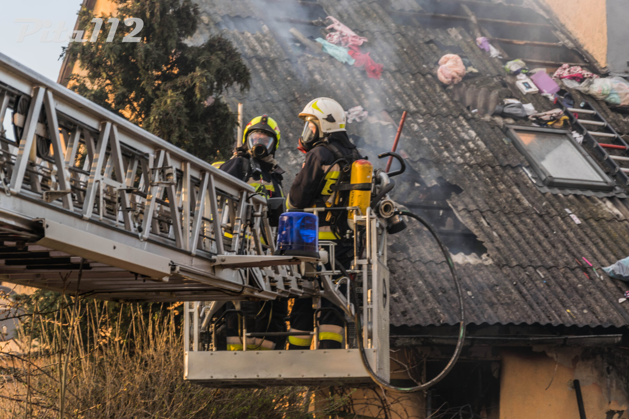 Przystąpiono do akcji gaśniczej w której m. in. wprowadzona została rota strażaków w aparatach ODO w celu lokalizacji źródła ognia. Niestety pożar rozprzestrzenił się na poddasze, w związku z czym niezbędna okazała się częściowa rozbiórka nadpalonych elementów pokrycia dachowego.