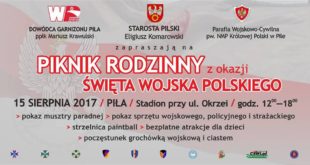 15 sierpnia na stadionie przy ul. Okrzei w Pile odbędzie się piknik rodzinny z okazji Święta Wojska Polskiego. Starosta Pilski Eligiusz Komarowski wraz z Dowódcą Garnizonu Piła ppłk. Mariuszem Krawulskim oraz Parafią Wojskowo – Cywilną pw. NMP Królowej Polski w Pile serdecznie zapraszają pilan i mieszkańców powiatu pilskiego. Tego dnia ...