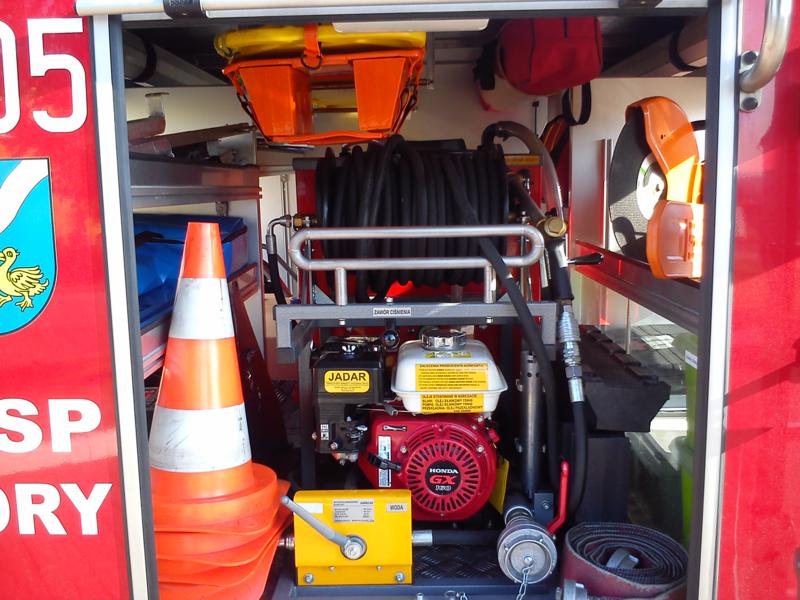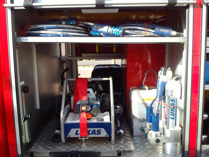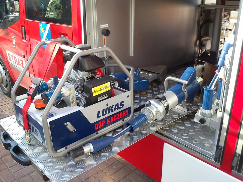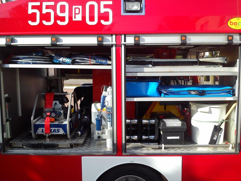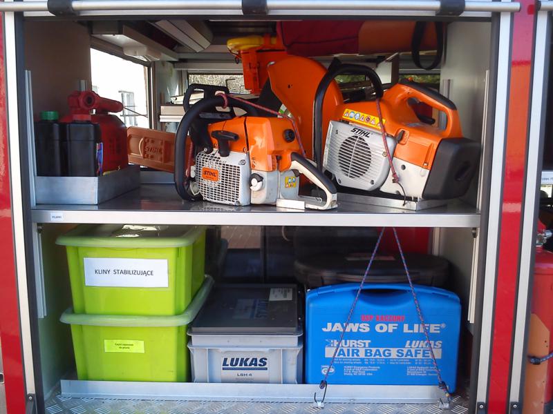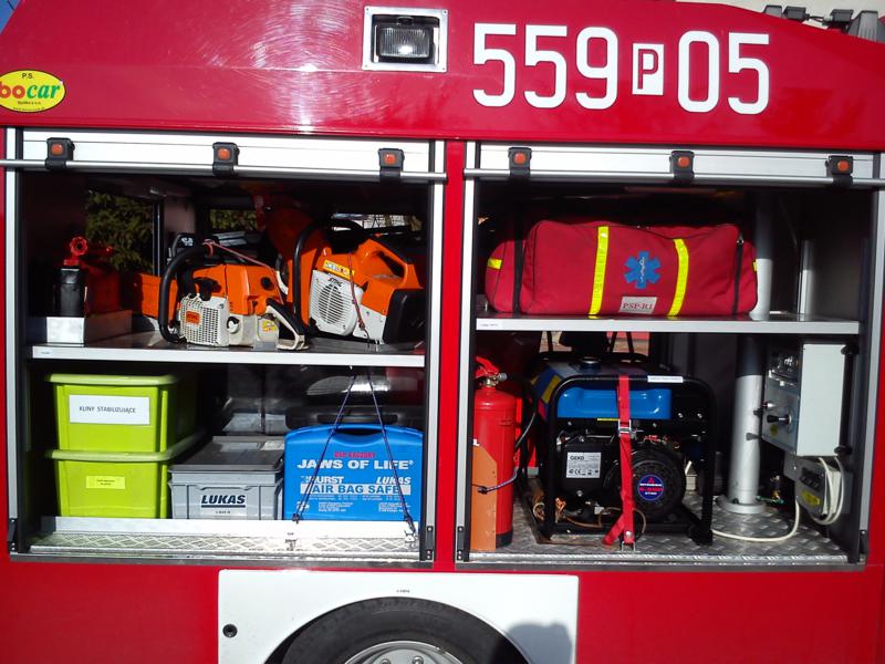 – Zestaw Ratownictwa Drogowego firmy LUKAS: pompa hydrauliczna, węże, rozpieracz ramieniowy wraz z łańcuchami do odciągania kolumny kierowniczej, nożyce, rozpieracz kolumnowy szt. 2 wraz ze wspornikami progowymi, piła do cięcia szyb, wybijaki do szyb, maty osłaniające ostre krawędzie przy cięciu pojazdu, pajączki na kierownice (zabezpieczenie przed wystrzałem poduszki powietrznej), osłona na poduszkę pasażera, zestaw do cięcia pedałów, zestaw do wywarzania drzwi, zestaw do stabilizacji pojazdu.