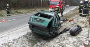 W dniu dzisiejszym (14.01.2018) około godziny 12:20 do Centrum Powiadamiania Ratunkowego wpłynęło zgłoszenie o wypadku drogowym na drodze powiatowej między Piłą a Kaczorami. Samochód osobowy jadący z Piły z nieustalonych dotąd przyczyn wypadł z jezdni a następnie kilkukrotnie przekoziołkował. Pojazdem podróżowały trzy osoby. Na szczęście nikomu nic poważnego się nie ...